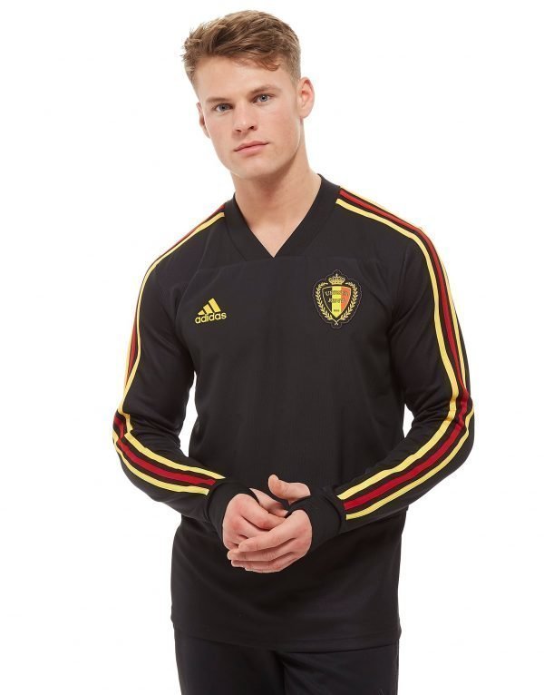 Train like the pros in this men’s Belgium 2018 Training Top from adidas. In a black colourway, the slim-fit top is equipped with Climalite tech, which wicks away sweat to keep you cool and comfortable whilst shaping up your skills. Mirroring the top worn by the players when they prepare for a match, it features a ribbed V-neckline, long sleeves and thumbholes for extra coverage. Finished with signature 3-Stripes to the sleeves, adidas branding to the chest and the legendary Belgium national crest. Our model is 6’0″ and wears a size medium.